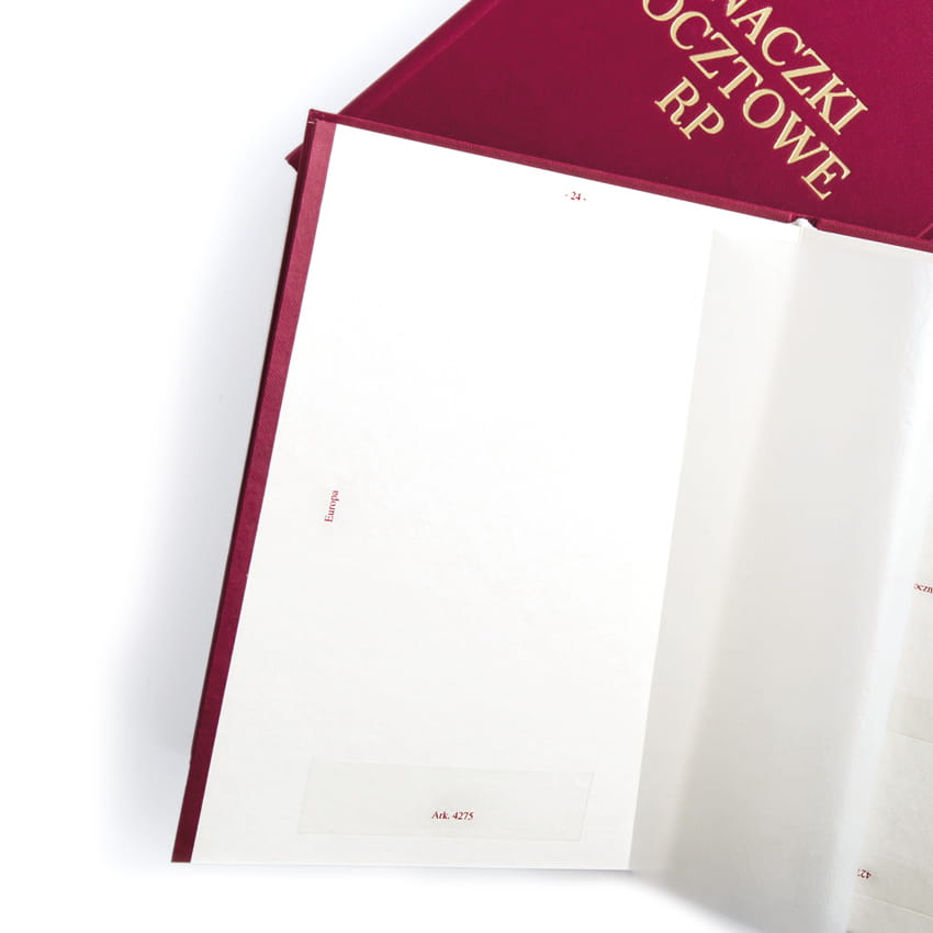 Wszystkie tomy wykonane w jednakowym formacie B5. Kolor okładki i futerału – bordo. Na okładce złocony napis znaczki pocztowe oraz lata wydania znaczków. Na grzbiecie klasera złocone oznaczenie tomu. Karty klaserowe w kolorze chamois. Paski dostosowane do poszczegółnych znaczków i ich odmian. Pod paskiem wydrukowany jest numer znaczka, dla którego jest przeznaczone to miejsce. Brzegi kart zabezpieczone są lamówką w kolorze okładki, do której są mocowane płótnem introligatorskim w tym samym kolorze.