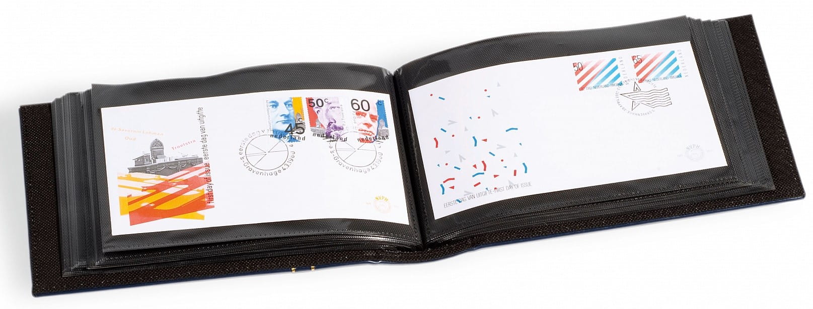 Album o pojemności 100 FDC,ETB lub kart pocztowych o wym.195 x 130 mm.Koszulki zamknięte z 3 stron,otwarte od góry.