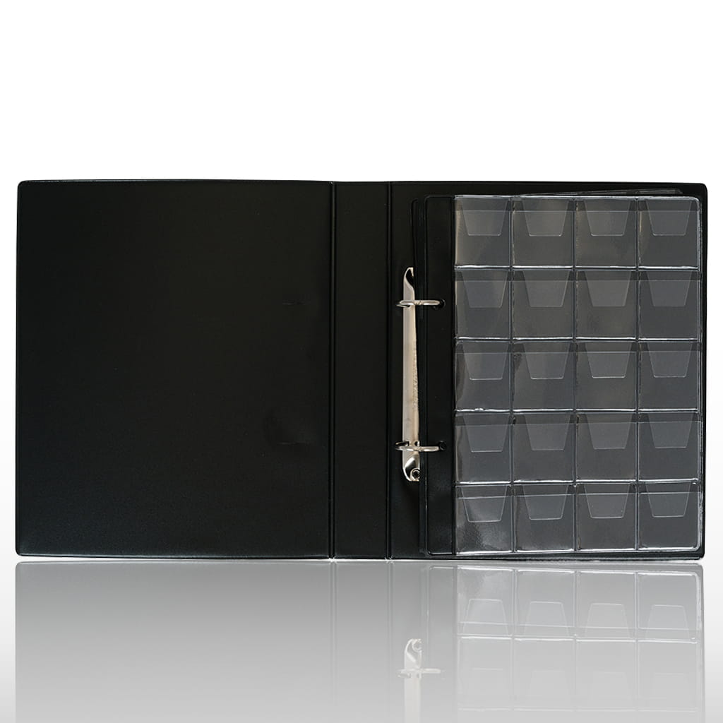 Album z futerałem.Klaser do monet M10k to najpopularniejszy klaser do monet wśród kolekcjonerów.Album zawiera 10 kart : karty na 30 monet każda, karty na 20 monet każda oraz karty na 12 monet każda.Sztywna okładka wykończona okładziną odporną na ścieranie,front okładki na gąbce.Mocowanie kart na zamku dwuringowym. Złocone paski na grzbiecie oraz wizerunek monety z okładce albumu.Karty oddzielone czarnymi przekładkami.Futerał w kolorze okładki.