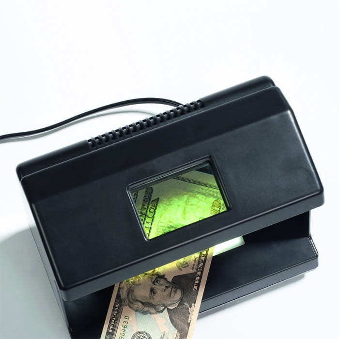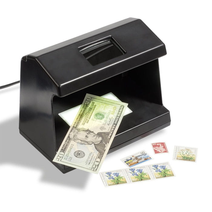Sprawdź z pomocą urządzenia Multi - Tester znaczki,monety,banknoty,karty kredytowe jak również np.zabezpieczenia fluorescencyjne banknotów, aby móc odróżnić oryginał od falsyfikatu. Dzięki wydajnej jasnej lampie UV - 9W kolorowe cząstki aktywne w świetle UV stają się widoczne nawet w świetle dziennym. Białawe światło od spodu (lampa 4W) możliwe jest również rozpoznanie znaku wodnego. Dzięki wbudowanej lupie można oglądać obiekt w 2-krotnym powiększeniu. Funkcjonuje z zasilaniem 220-240 V.Obudowa z czarnego tworzywa sztucznego.