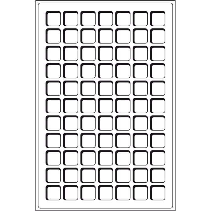 Palety na 77 monet o średnicy do 22 mm.Paleta posiada welurowopodobną niebieską powierzchnię.Palety pasują do walizek firmy Leuchtturm.